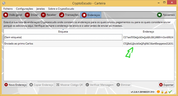 Uma etiqueta ou descrição apropriada para cada um dos seus endereços CryptoEscudo, são uma parte bastante importante para a sua gestão e análise das transações.